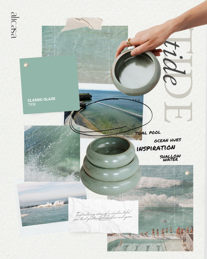Inspired by the ever-enticing colour of a shallow tidal pool that glistens between blue and green, and the ebb and flow of the ocean, TIDE is a beautiful ceramic glaze that brings a serene, coastal feel to your home.
